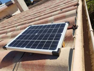 J’ai installé un panneau solaire sur une batterie de voiture, afin de charger mes appareils électroniques en autonomie.